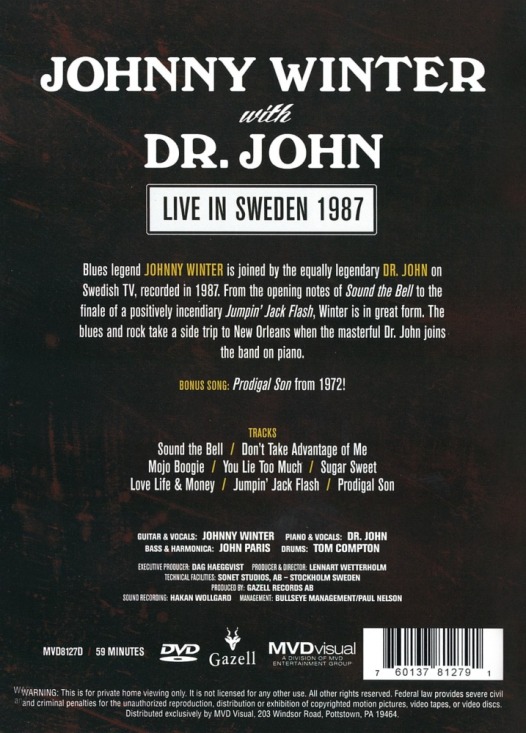 Johnny Winter With Dr. John - Live In Sweden 1987 (DVD) in der Gruppe Labels / Gazell bei Bengans Skivbutik AB (5664711)