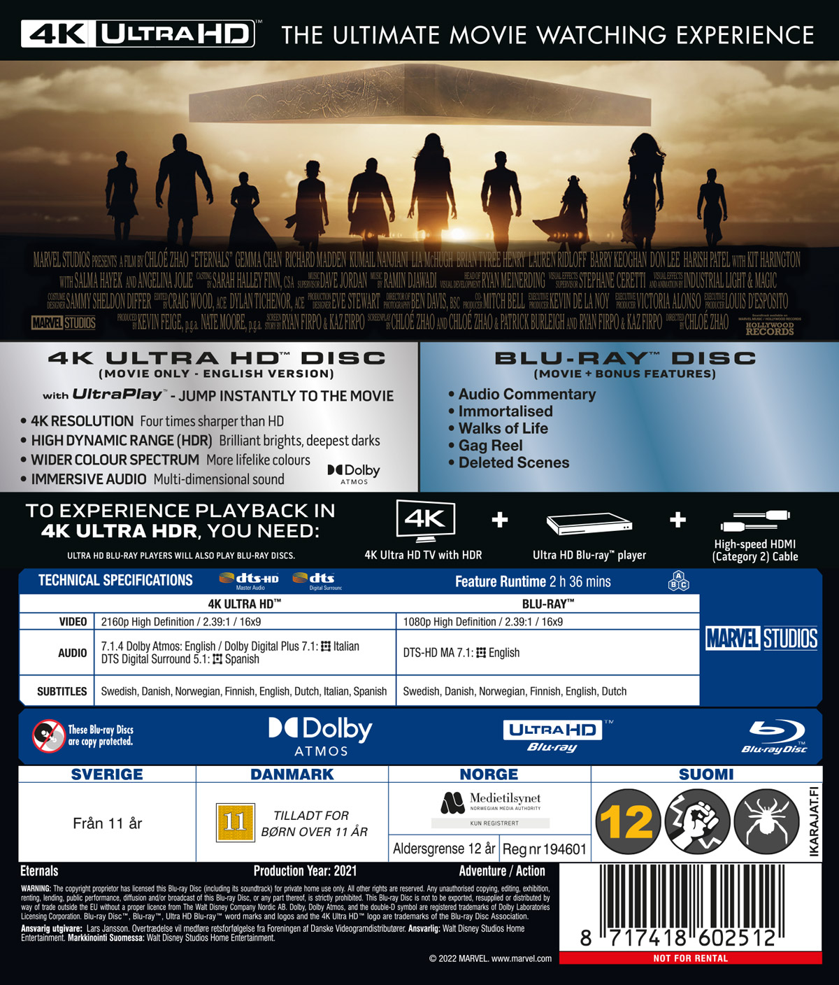 Movie - Eternals (2021)-Uhd+Bd in der Gruppe Film / Film UHD-4K / Action bei Bengans Skivbutik AB (5662034)