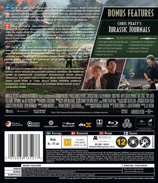 Movie - Jurassic World: Fallen Kingdom Bd S-T in der Gruppe Film / Film Blu-ray / Adventure bei Bengans Skivbutik AB (5661231)