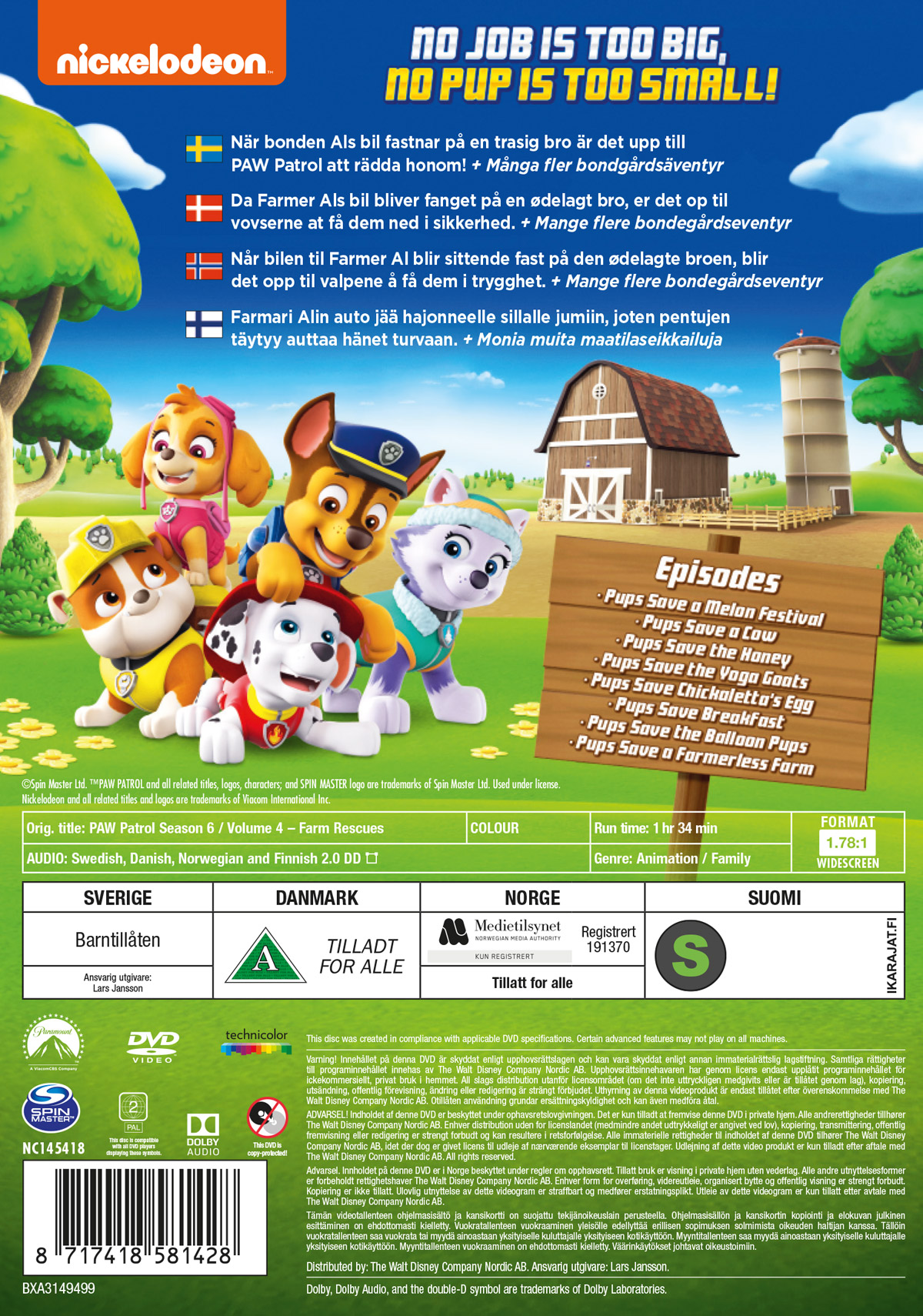 Movie - Paw Patrol S6 Vol4/Scandi in der Gruppe Film / Film DVD / Animation bei Bengans Skivbutik AB (5662006)